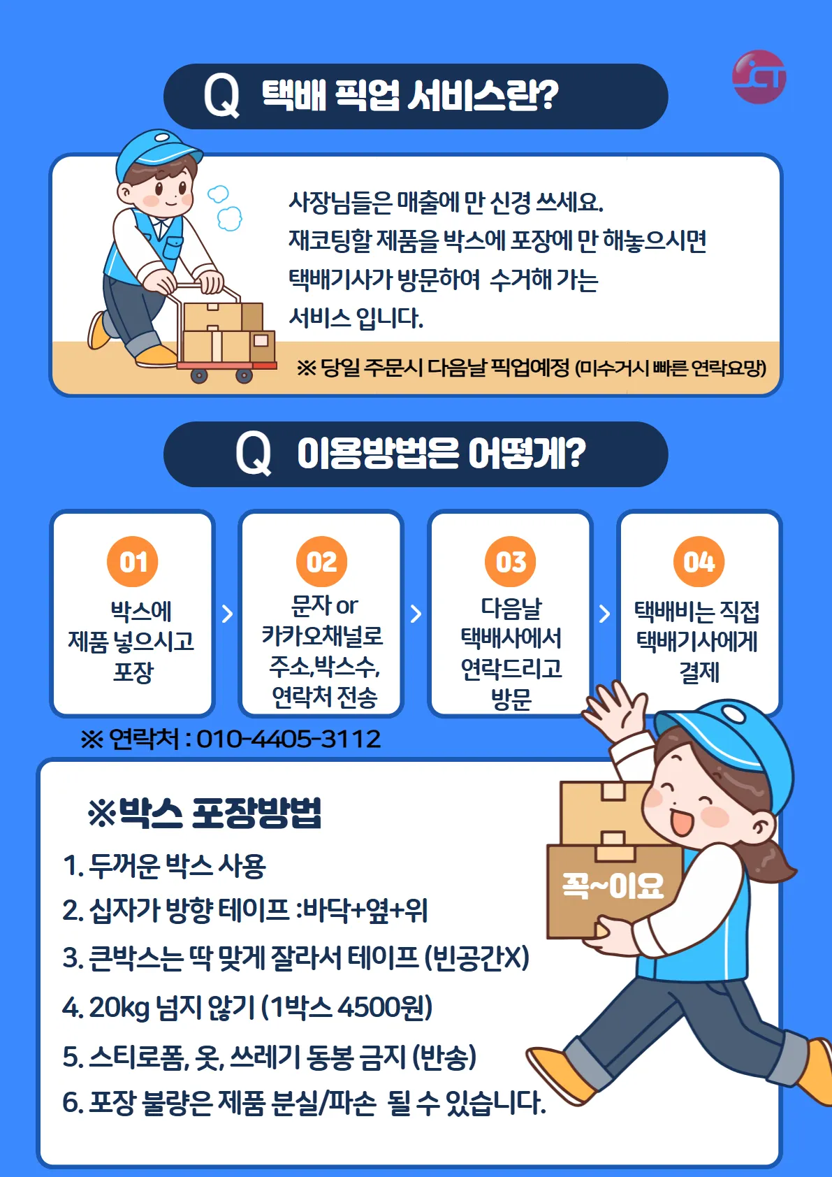 포장만 잘 해두시면 나머지는 저희가 모두 처리합니다.